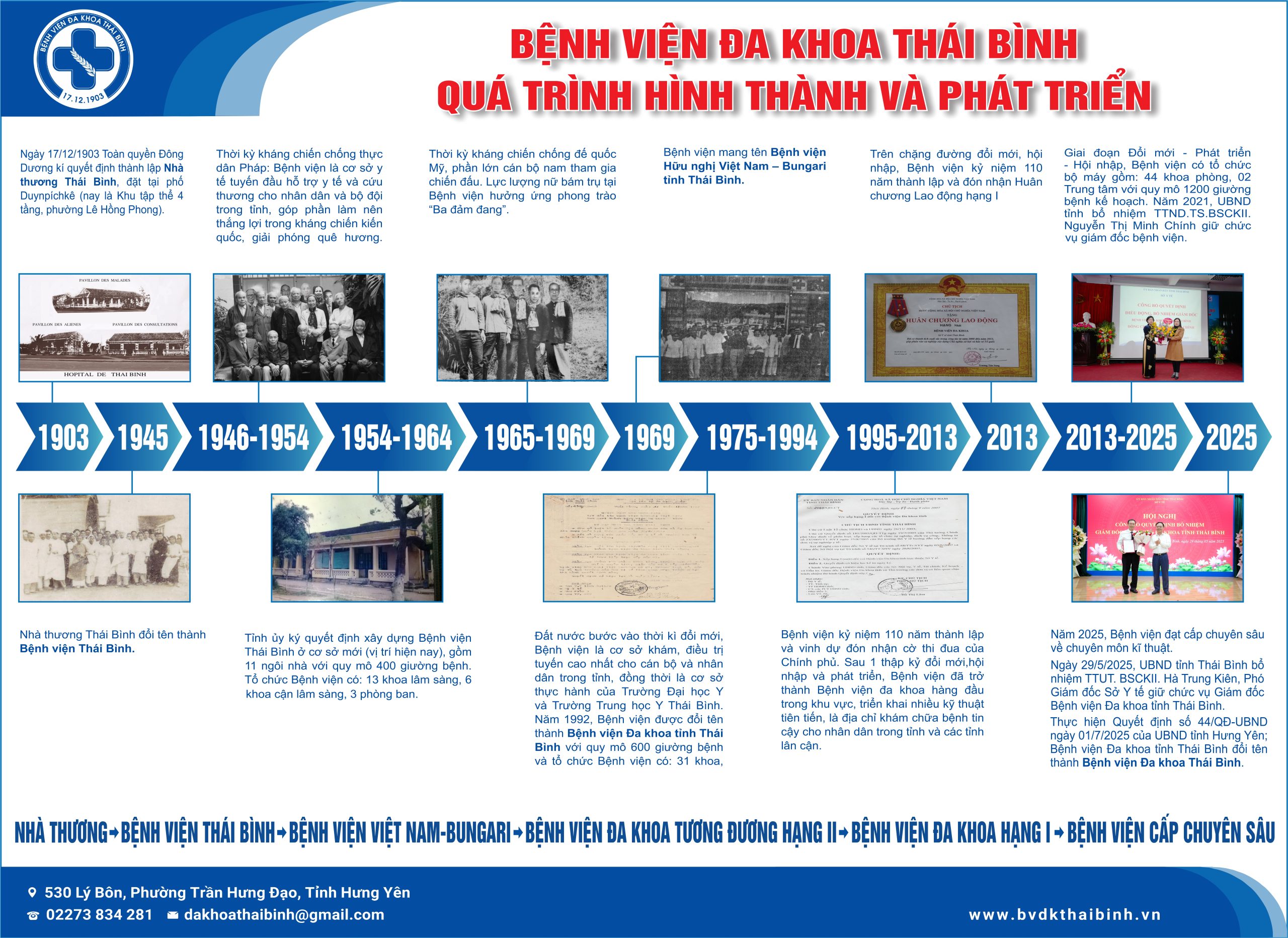Ngày 17/12/1903, toàn quyền Đông Dương ký quyết định thành lập Nhà thương Thái Bình đặt tại phố Dyunpichke (nay là khu tập thể 4 tầng, phường Lê Hồng Phong), tiền thân của Bệnh viện Đa khoa tỉnh Thái Bình ngày nay. Nhà thương khi đó mới chỉ có 127 giường bệnh, cơ sở vật chất – trang thiết bị nghèo nàn, lạc hậu.