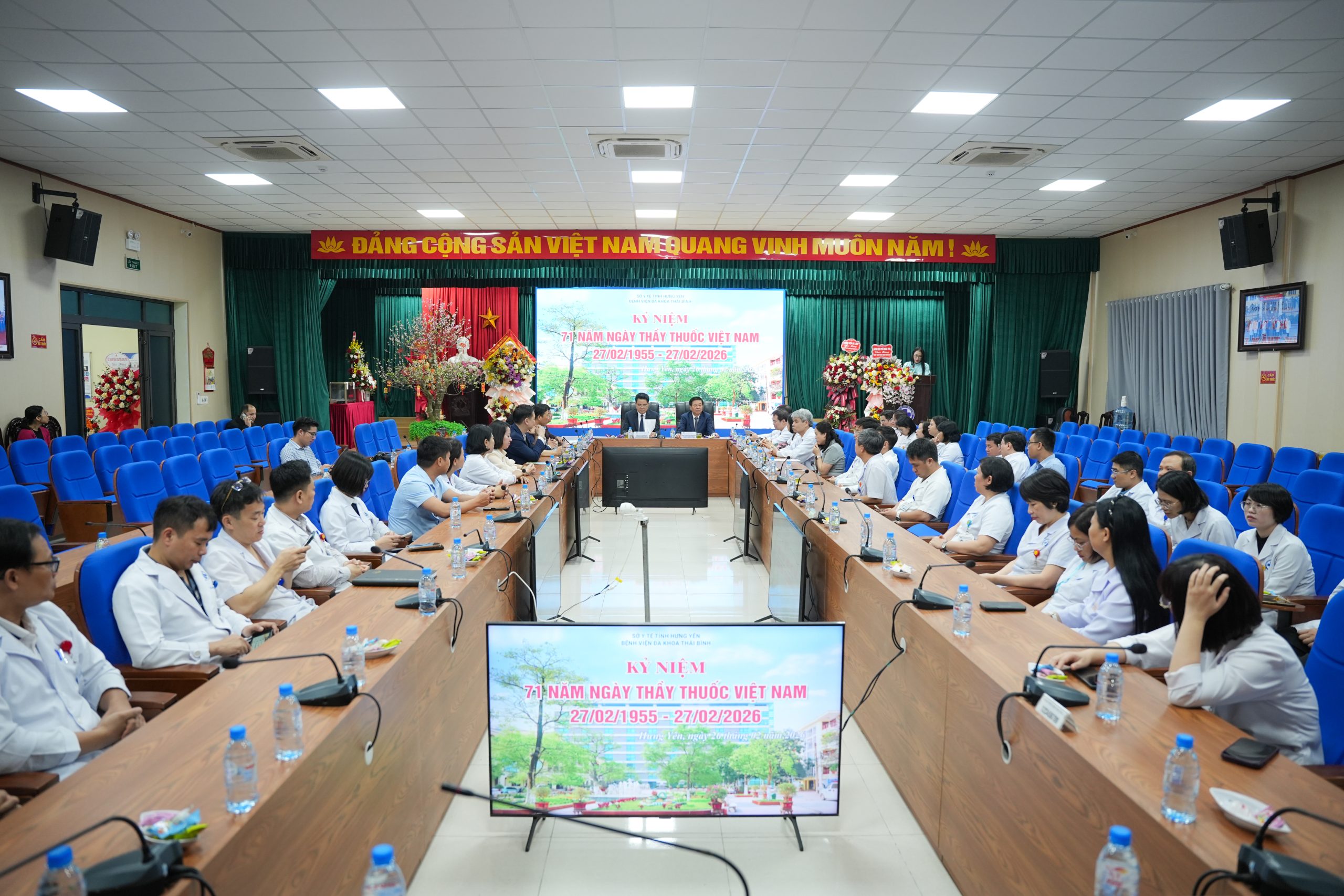 Nhân kỷ niệm 71 năm Ngày Thầy thuốc Việt Nam (27/2/1955 – 27/2/2026), sáng ngày 26/2, đoàn đại biểu Tỉnh ủy, HĐND, UBND, Ủy ban MTTQ Việt Nam tỉnh Hưng Yên đã đến thăm và chúc mừng cán bộ, nhân viên y tế tại Bệnh viện Đa khoa Thái Bình.