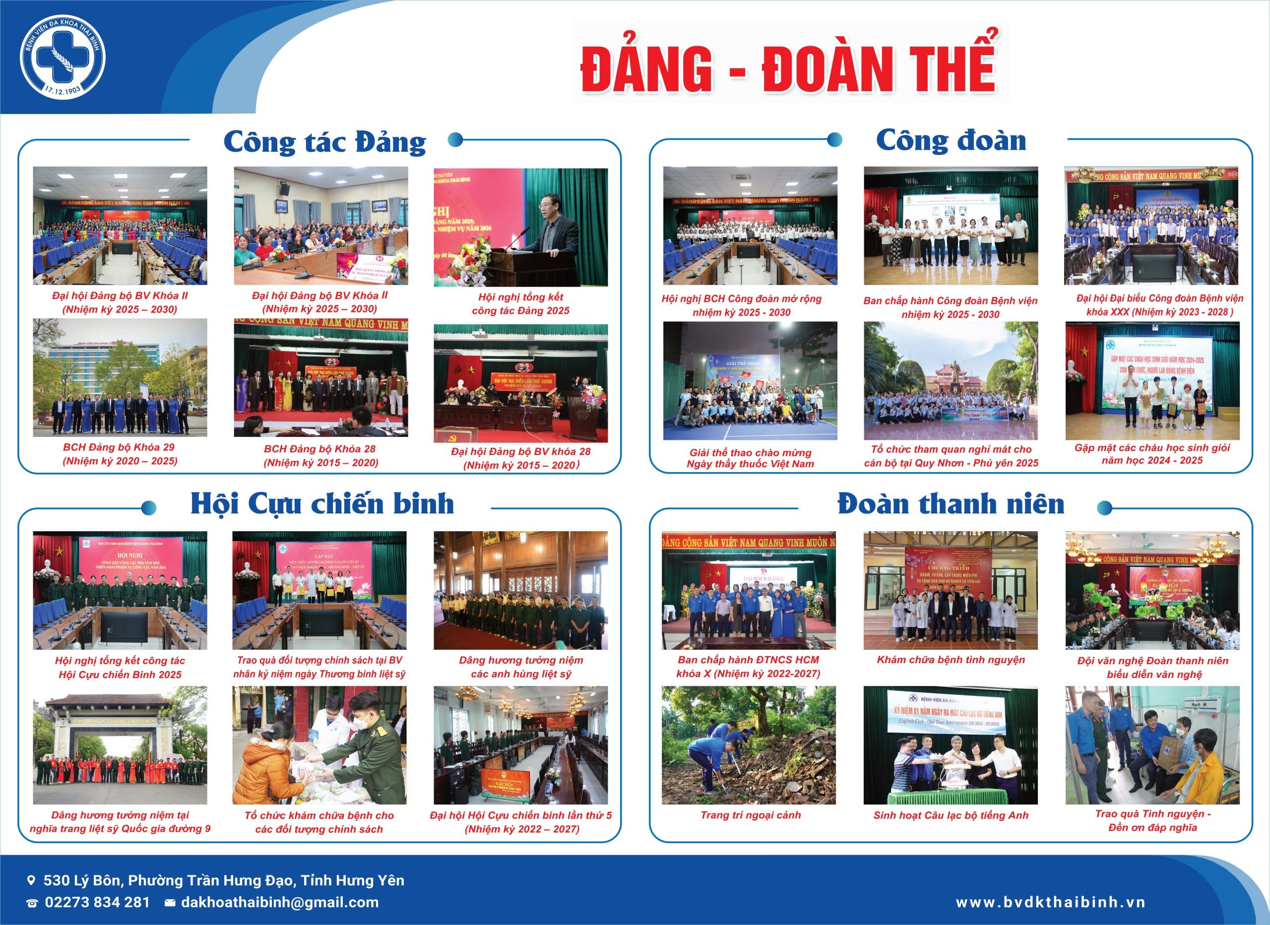Đảng bộ và các Đoàn thể tại Bệnh viện luôn có vai trò quan trọng trong xây dựng Bệnh viện thành một khối đại đoàn kết, trong đó mỗi cán bộ viên chức – người lao động luôn tin tưởng, nỗ lực hết mình vì sự phát triển chung của Bệnh viện.