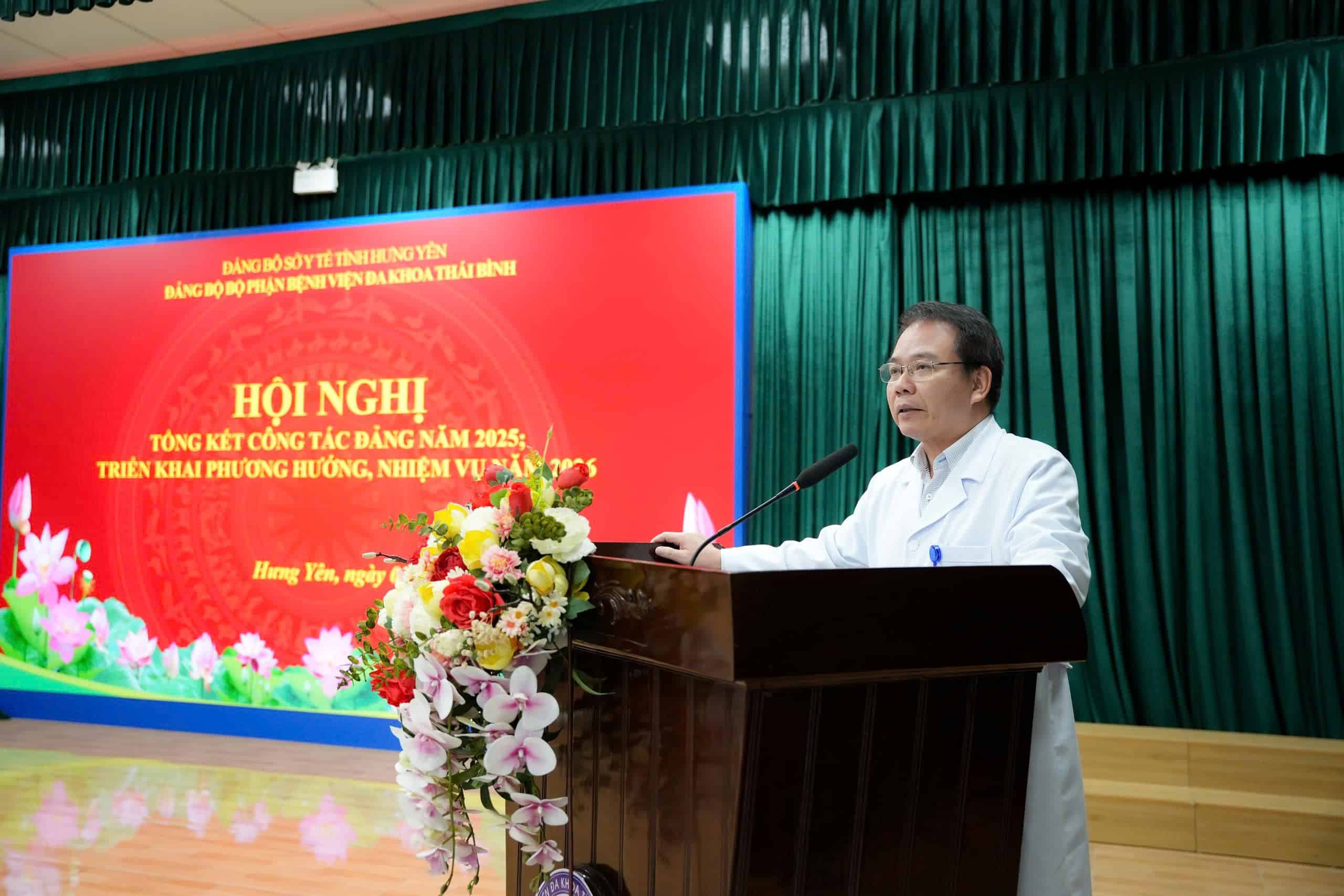 Đảng bộ bộ phận Bệnh viện Đa khoa Thái Bình hiện gồm 39 chi bộ trực thuộc với 510 đảng viên. Việc tăng cường vai trò lãnh đạo của cấp uỷ Đảng, đội ngũ cán bộ, đảng viên trong toàn viện đã phát huy sức mạnh đoàn kết thực hiện thắng lợi các nhiệm vụ chính trị năm 2025. Đảng bộ đã lãnh đạo, chỉ đạo Đại hội các chi bộ trực thuộc nhiệm kỳ 2025 – 2027; Đại hội đại biểu Đảng bộ bộ phận Bệnh viện nhiệm kỳ 2025 – 2030. Nghiêm túc quán triệt thực hiện các chỉ thị, nghị quyết của Đảng, chính sách pháp luật của Nhà nước. Trong triển khai thực hiện nhiệm vụ chuyên môn, Đảng bộ Bệnh viện đã lãnh đạo, chỉ đạo hoàn thành xuất sắc nhiệm vụ khám chữa bệnh. Bệnh viện ghi nhận sự tăng trưởng ổn định với 340.412 lượt khám bệnh, điều trị nội trú cho 94.537 bệnh nhân và đưa tổng thu dịch vụ đạt khoảng 829,475 tỷ đồng. Đáng chú ý, Bệnh viện đã đưa vào hoạt động 05 đơn vị, triển khai hệ thống cắt lớp vi tính 512 lát cắt và áp dụng hồ sơ bệnh án điện tử không sử dụng bệnh án giấy. Tổ chức nhiều hoạt động văn hóa, thể thao, chăm lo đời sống tinh thần cho người lao động….