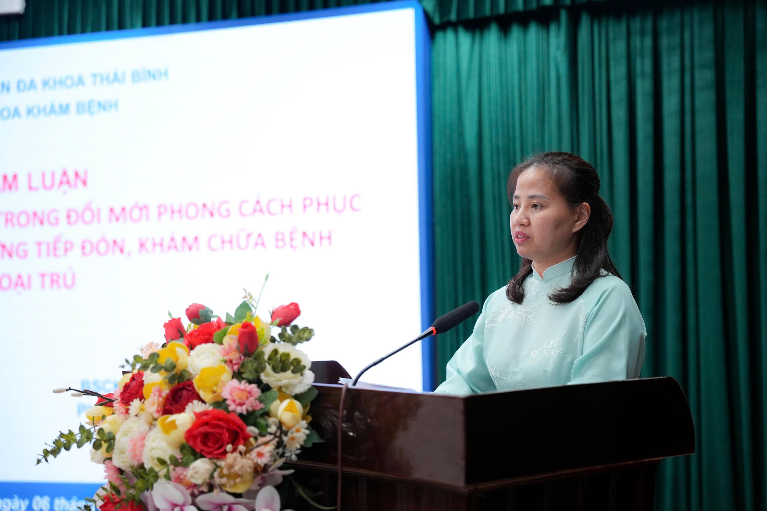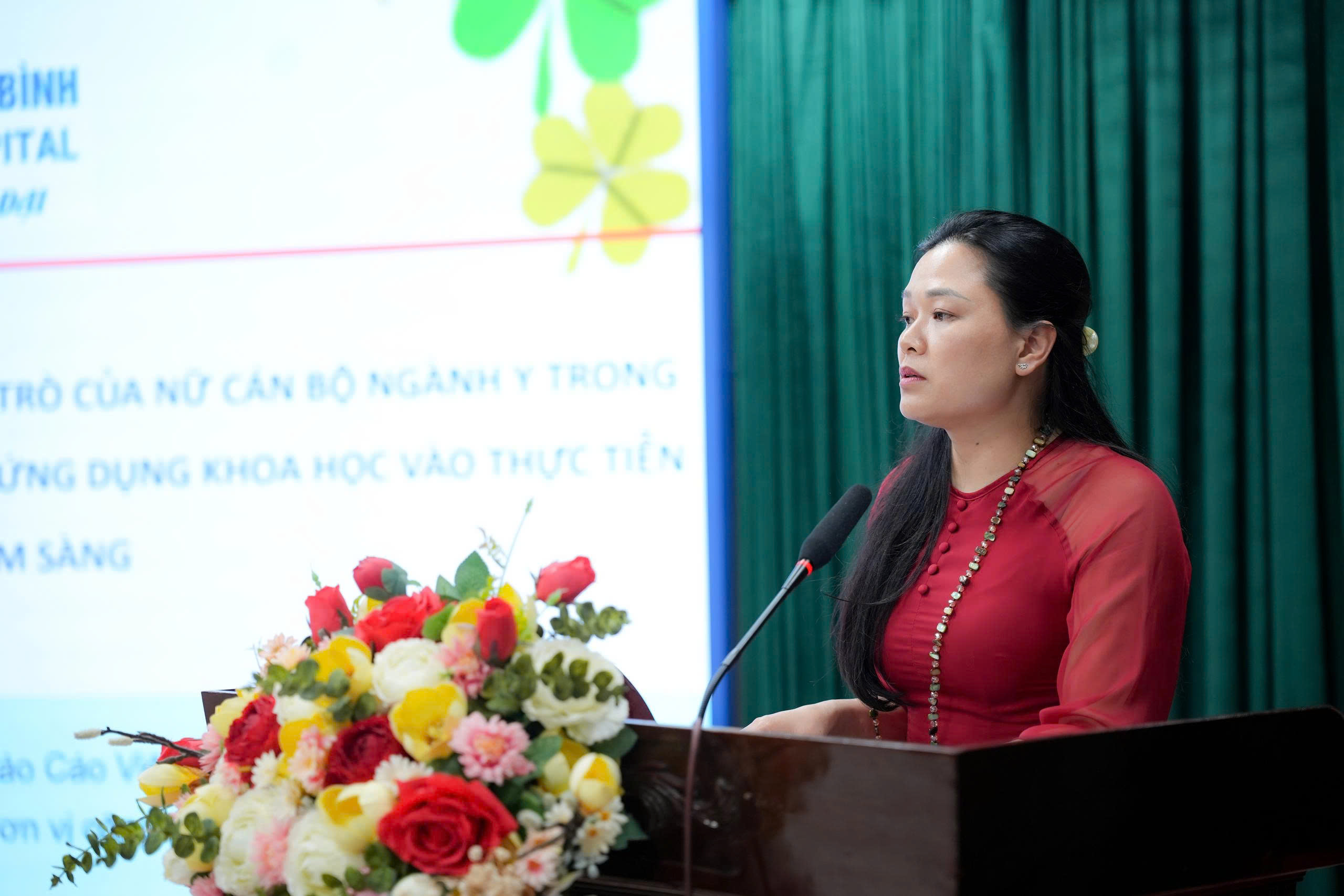Tại chương trình, các đại biểu đã cùng nghe bài tham luận về Vai trò của nữ cán bộ y tế trong đổi mới phong cách phục vụ, nâng cao chất lượng tiếp đón, khám chữa bệnh ngoại trú và Vai trò của nữ cán bộ y tế trong hoạt động nghiên cứu, ứng dụng khoa học và thực tiễn lâm sàng.