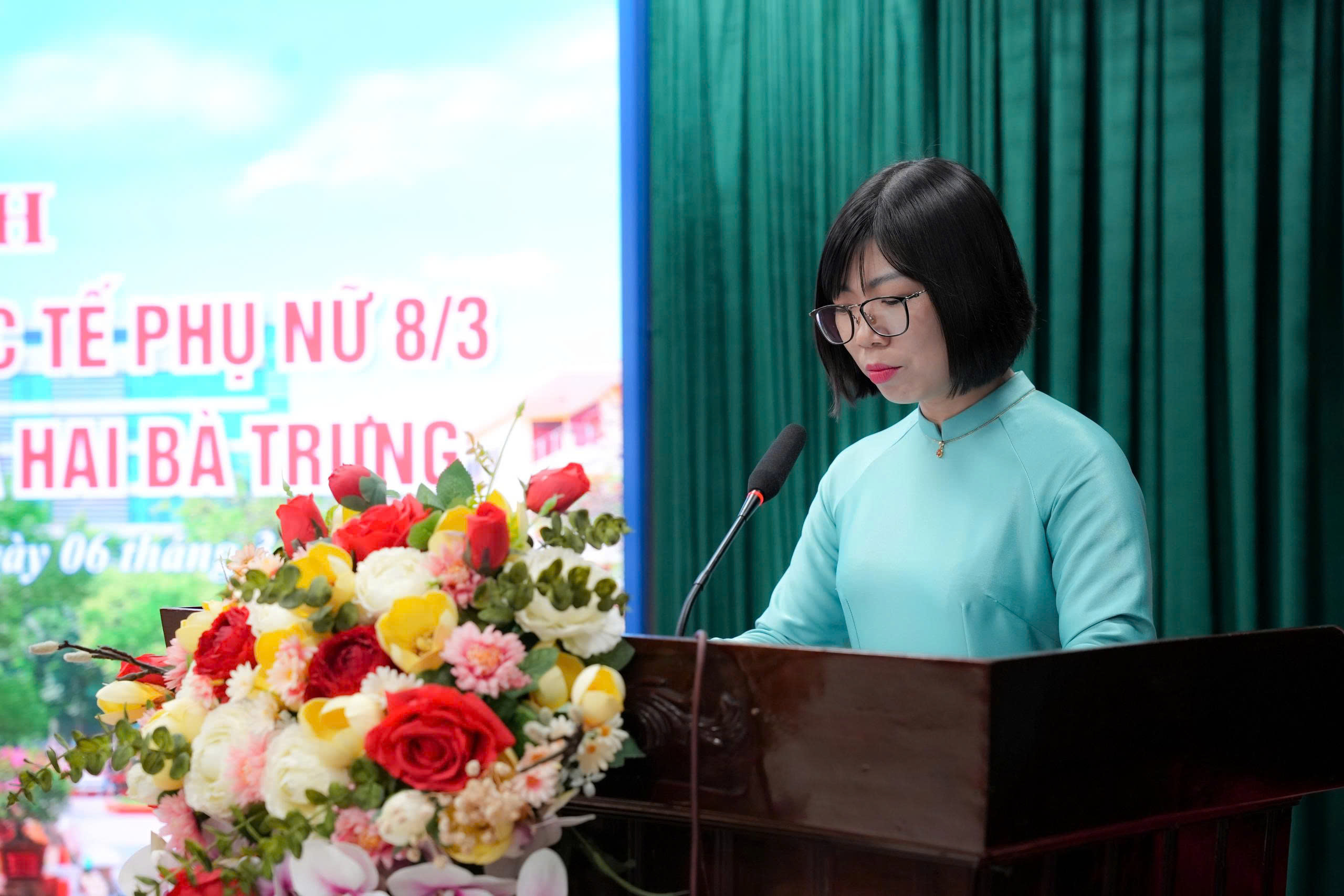 Tại lễ mít tinh, Ths. Lương Thị Mai Anh – Trưởng ban nữ công Bệnh viện đã đọc Diễn văn Kỷ niệm cùng ôn lại lịch sử ngày Quốc tế phụ nữ 8/3, cuộc khởi nghĩa Hai Bà Trưng, tôn vinh những giá trị truyền thống và đức tính tốt đẹp của chị em phụ nữ Việt Nam nói chung và Bệnh viện Đa khoa Thái Bình nói riêng.