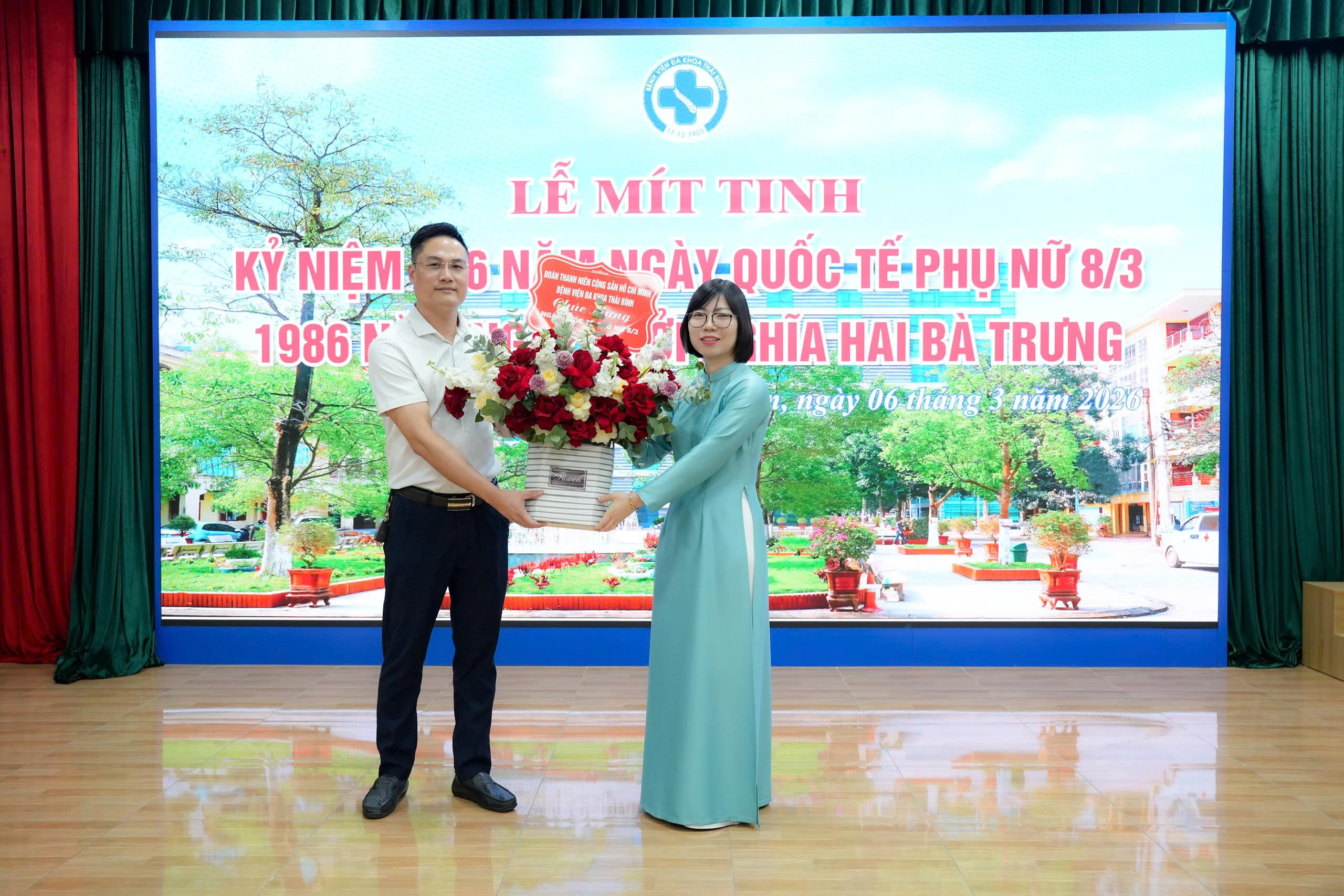 Chiều ngày 06/3, Bệnh viện Đa khoa Thái Bình tổ chức Lễ mít tinh kỷ niệm 116 năm ngày Quốc tế phụ nữ và 1986 năm ngày khởi nghĩa Hai Bà Trưng. Tới dự lễ mít tinh có TTƯT. BSCKII. Hà Trung Kiên – Bí thư Đảng ủy, Giám đốc Bệnh viện; cùng các đồng chí trong BCH Đảng ủy, Ban lãnh đạo Bệnh viện, BCH Công đoàn; trưởng/ phó, điều dưỡng trưởng/ kỹ thuật viên trưởng các khoa, phòng, trung tâm; tổ trưởng công đoàn, tổ trưởng tổ nữ công và 10% cán bộ nữ Bệnh viện.