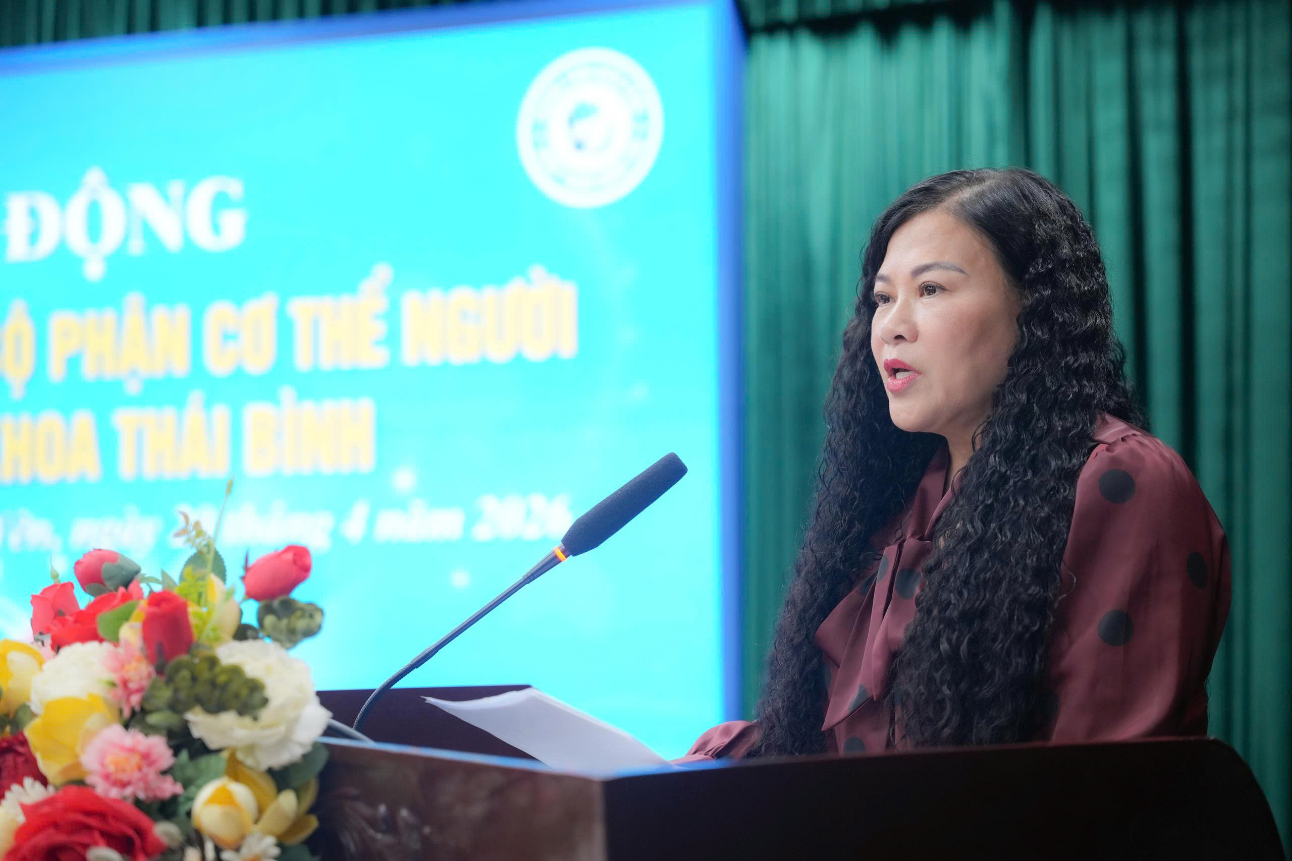 Đại diện cho lãnh đạo Sở Y tế tỉnh Hưng Yên, BSCKII. Lê Thị Thanh Phương – Phó Giám đốc Sở Y tế cũng đánh giá rất cao ý nghĩa của Lễ phát động hiến tặng mô, bộ phận cơ thể người tại Bệnh viện Đa khoa Thái Bình. Đồng chí hy vọng những giá trị nhân văn cao cả của việc đăng ký hiến tặng mô, tạng sẽ được lan tỏa sâu rộng trong ngành y tế và toàn xã hội.