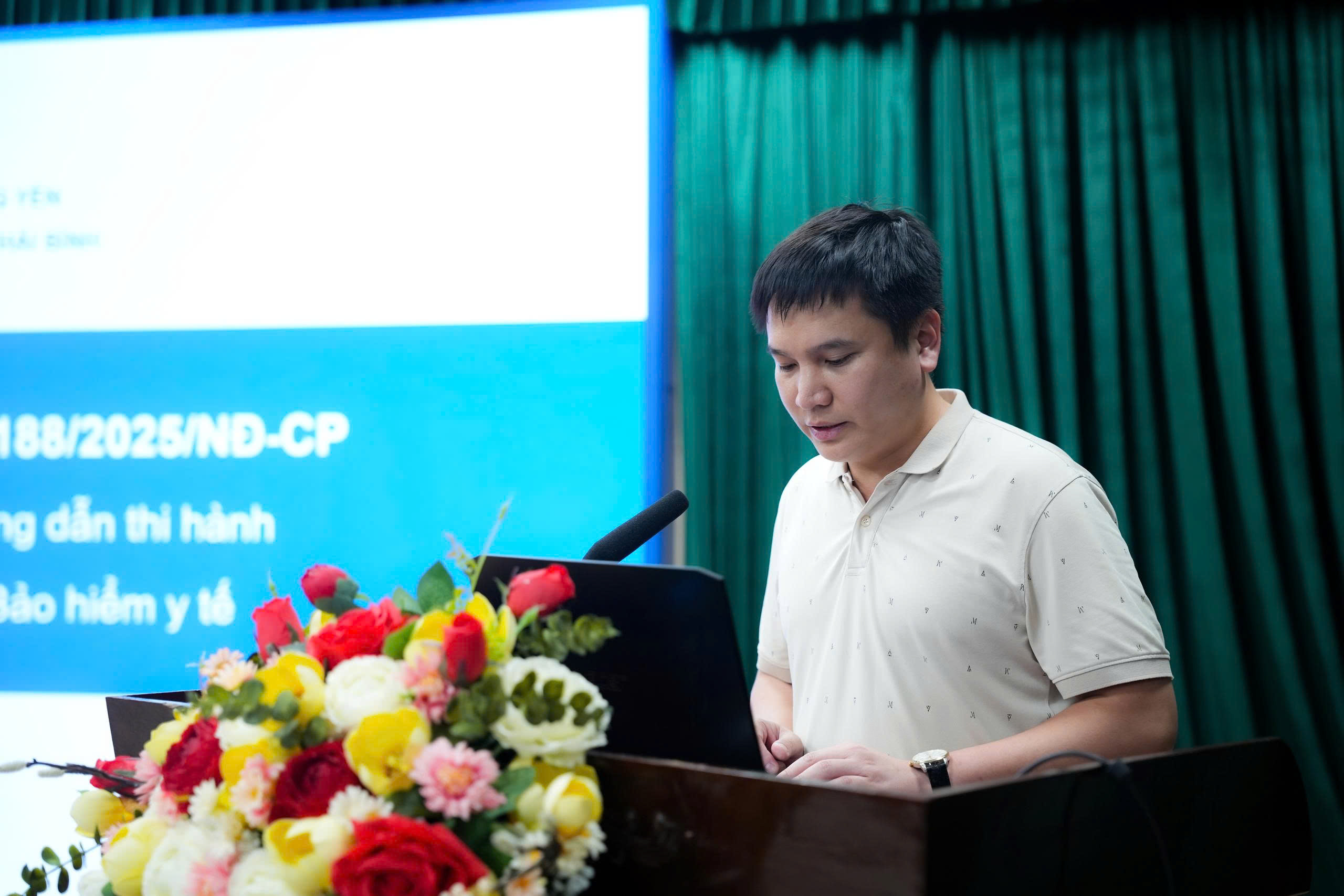 Tại Hội nghị, Ths.Bs. Vũ Hải Sơn, Phòng Kế hoạch tổng hợp đã triển khai các nội dung của Nghị định 188/2025/NĐ-CP Quy định chi tiết và hướng dẫn thi hành một số điều của Luật Bảo hiểm y tế. Trong đó có những nội dung đáng chú ý như: Mở rộng đối tượng tham gia bảo hiểm y tế (BHYT), làm rõ và bổ sung nhiều nhóm đối tượng thể hiện tinh thần bao phủ toàn dân trong chính sách BHYT; quy định mức đóng và hỗ trợ đóng BHYT cho từng nhóm đối tượng, đặc biệt chú trọng đến đối tượng yếu thế, khó khăn; quy định cụ thể về thủ tục, phương thức thanh toán chi phí khám chữa bệnh, đảm bảo tính minh bạch và thuận tiện; tăng cường ứng dụng công nghệ số trong quản lý, thanh toán và thực hiện BHYT nhằm nâng cao hiệu quả và chất lượng dịch vụ.