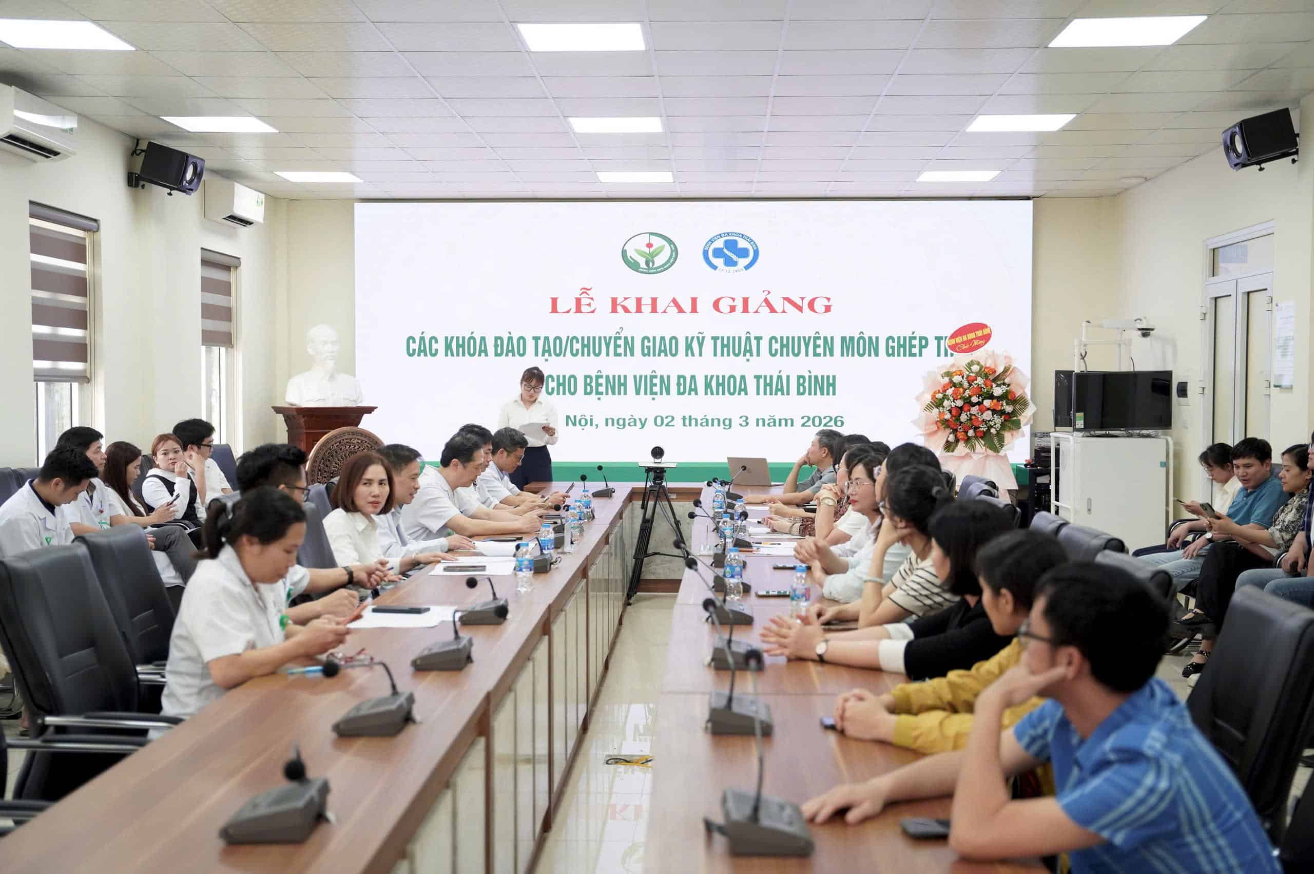 Chiều ngày 02/03/2026, tại Bệnh viện Hữu nghị Việt Đức đã diễn ra lễ khai giảng khóa đào tạo, chuyển giao kỹ thuật chuyên môn ghép thận cho Bệnh viện Đa khoa Thái Bình. Đây là một trong những nội dung trọng điểm thuộc chương trình đào tạo, chuyển giao kỹ thuật chuyên môn ghép thận giữa hai đơn vị.