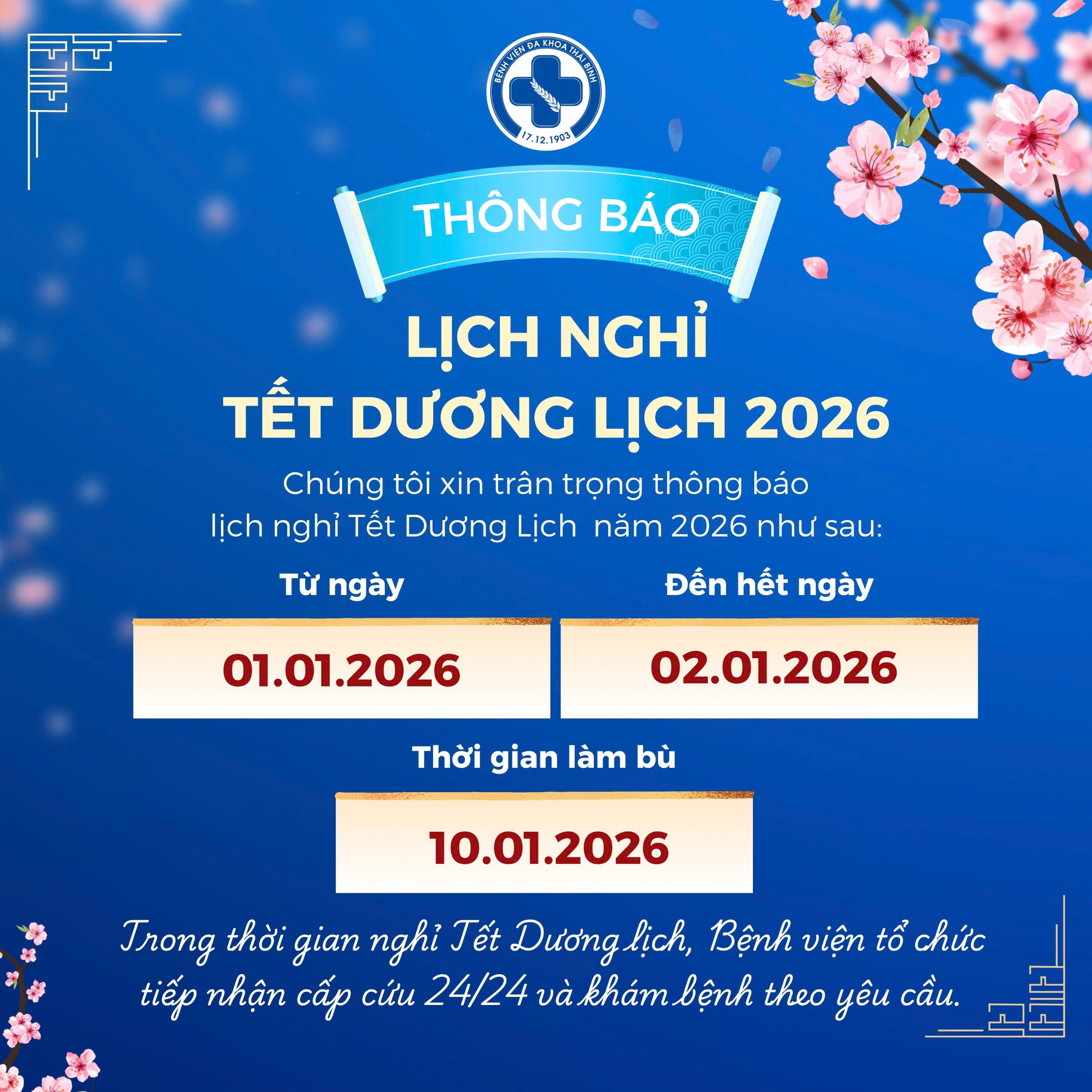 Bệnh viện Đa khoa Thái Bình trân trọng thông báo Lịch nghỉ Tết Dương lịch như sau: