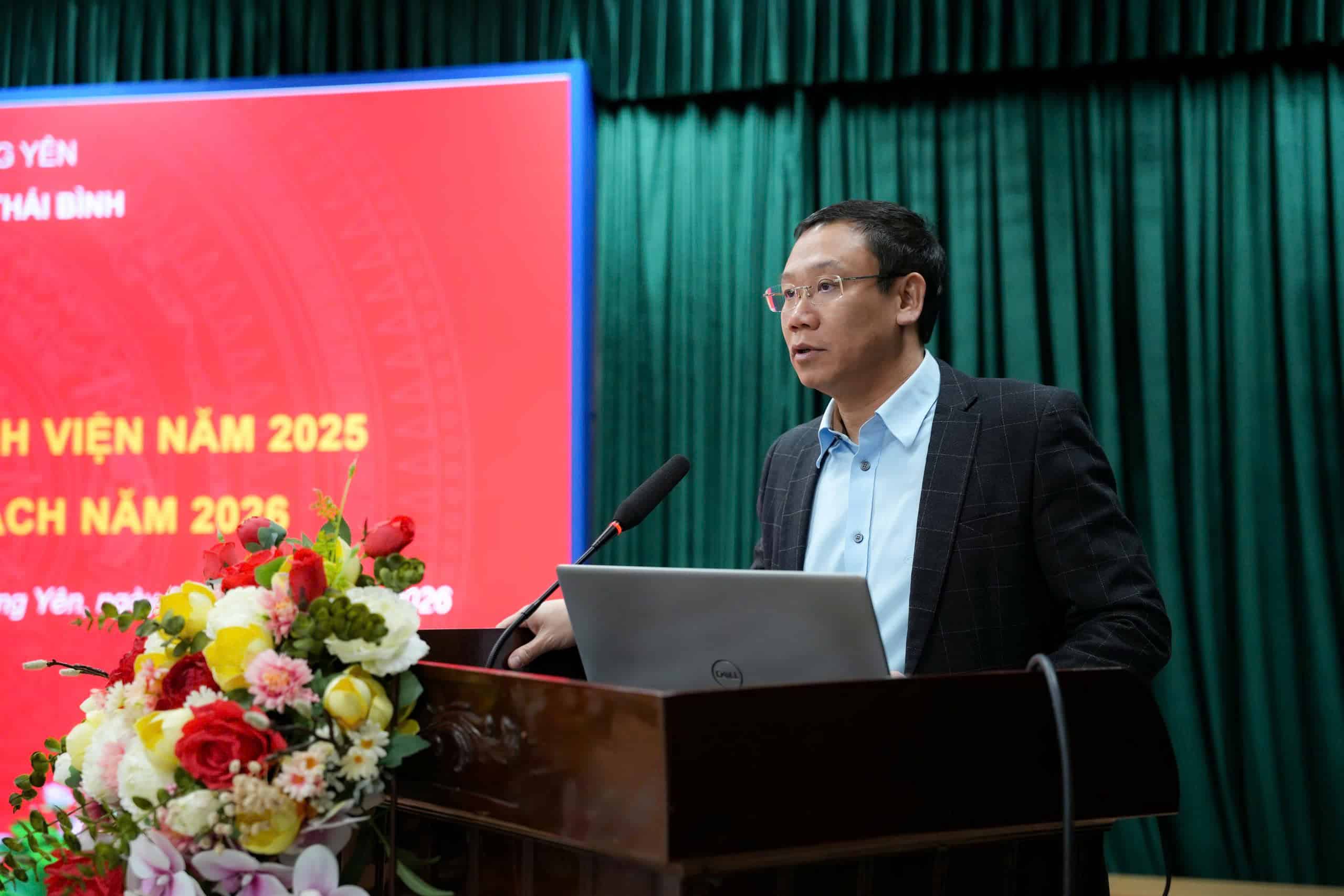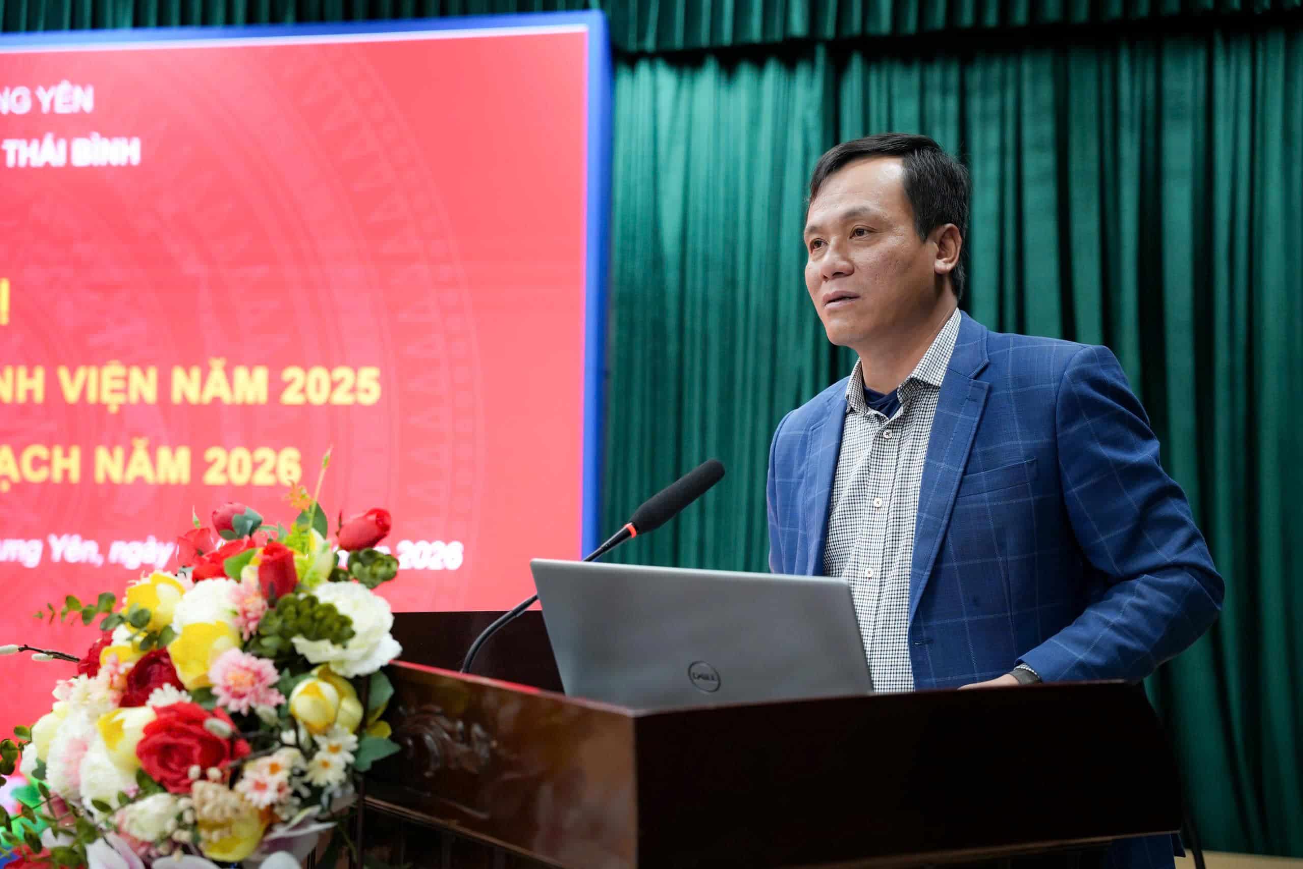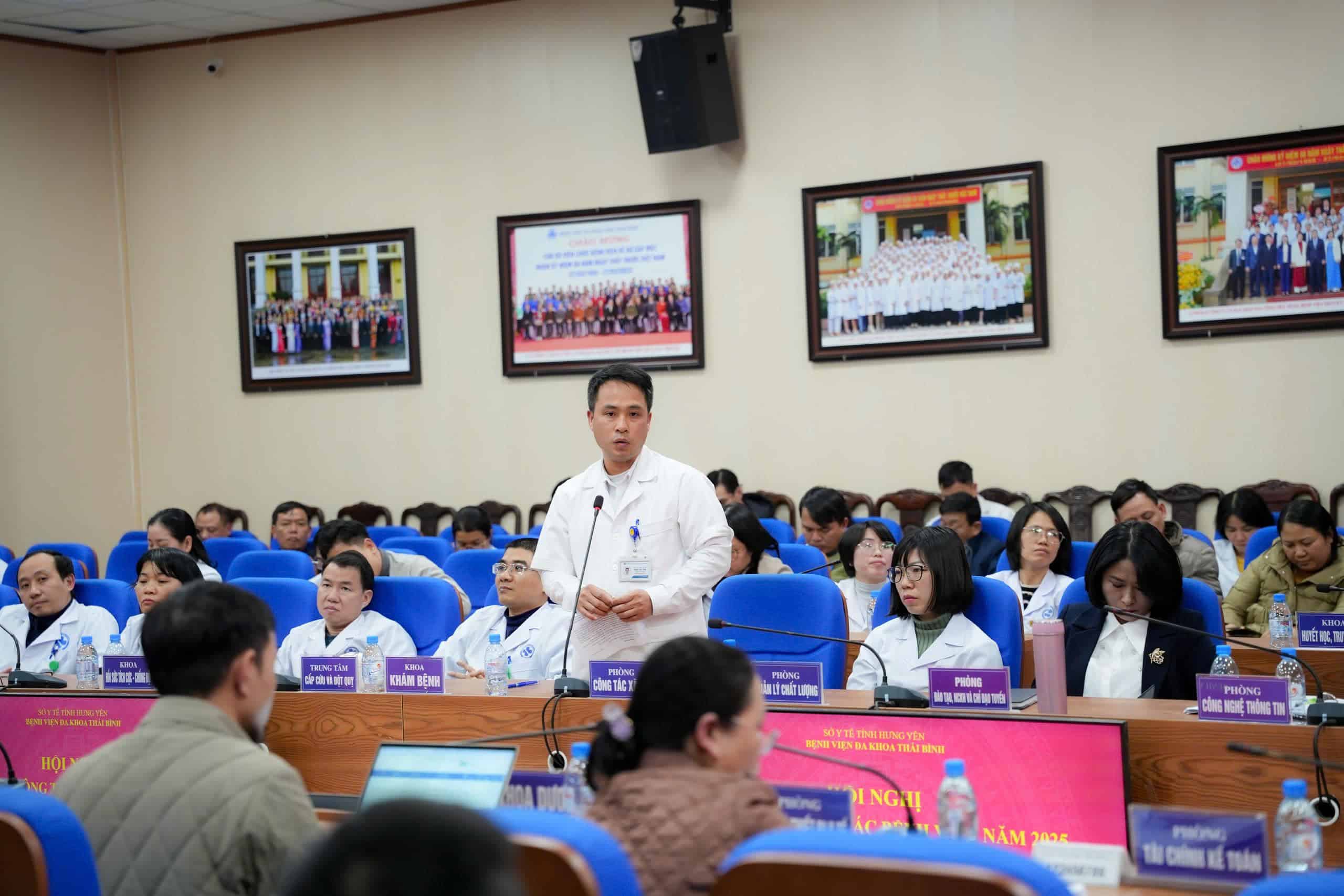 Phát biểu chỉ đạo tại Hội nghị, ThS. Nguyễn Quang Huy, PGĐ Sở Y tế tỉnh Hưng Yên ghi nhận và đánh giá cao những kết quả Bệnh viện Đa khoa Thái Bình đã đạt được. Năm 2025, Bệnh viện đã có sự thay đổi từng ngày cả về chất và lượng, đặc biệt là về nâng cao năng lực chuyên môn, ứng dụng công nghệ thông tin trong hoạt động khám chữa bệnh, phát triển nghiên cứu khoa học, hợp tác quốc tế…