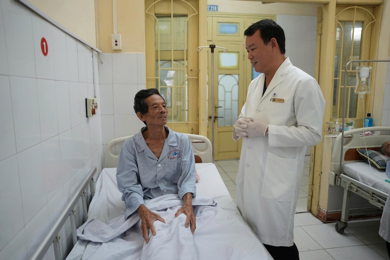 Bác sĩ kiểm tra tình trạng của bệnh nhân sau phẫu thuật