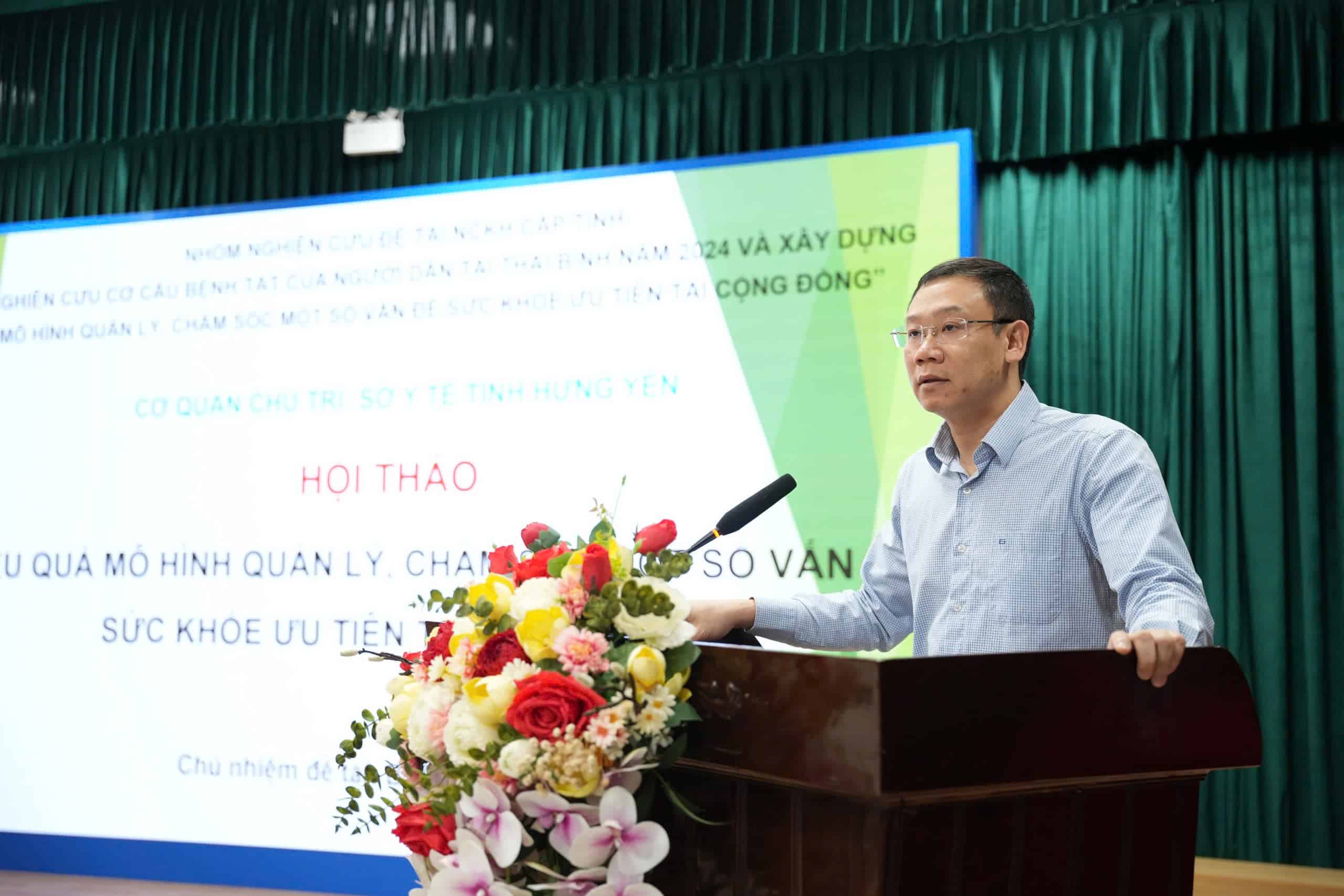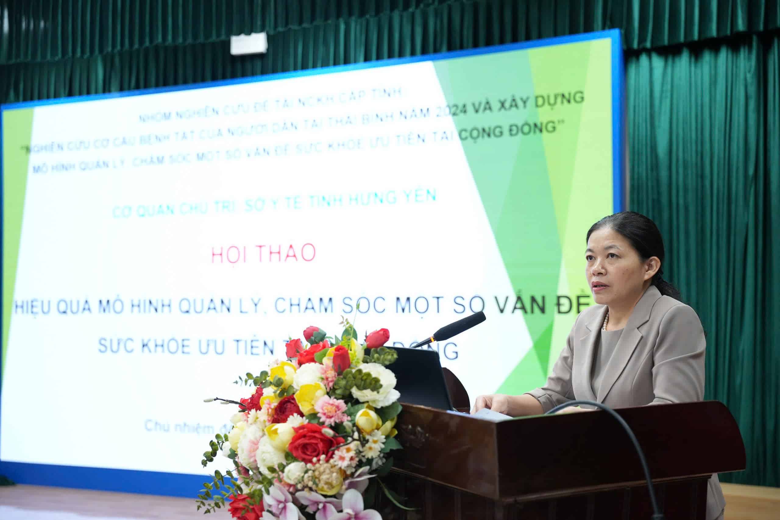 Hội thảo đã nghe Đ/c Trần Khánh Thu – Thành viên nhóm nghiên cứu, Trưởng phòng Kế hoạch – Tài chính Sở Y tế tỉnh Hưng Yên trình bày đề tài NCKH cấp tỉnh “Nghiên cứu cơ cấu bệnh tật của người dân tại Thái Bình năm 2024 và xây dựng mô hình quản lý, chăm sóc một số vấn đề sức khỏe ưu tiên tại cộng đồng”. Bên cạnh đó là một số báo cáo tham luận của các đại biểu đến từ Bệnh viện Đa khoa Thái Bình, Bệnh viện Sức khỏe tâm thần Thái Bình, Trung tâm Kiểm soát bệnh tật tỉnh Hưng Yên…
