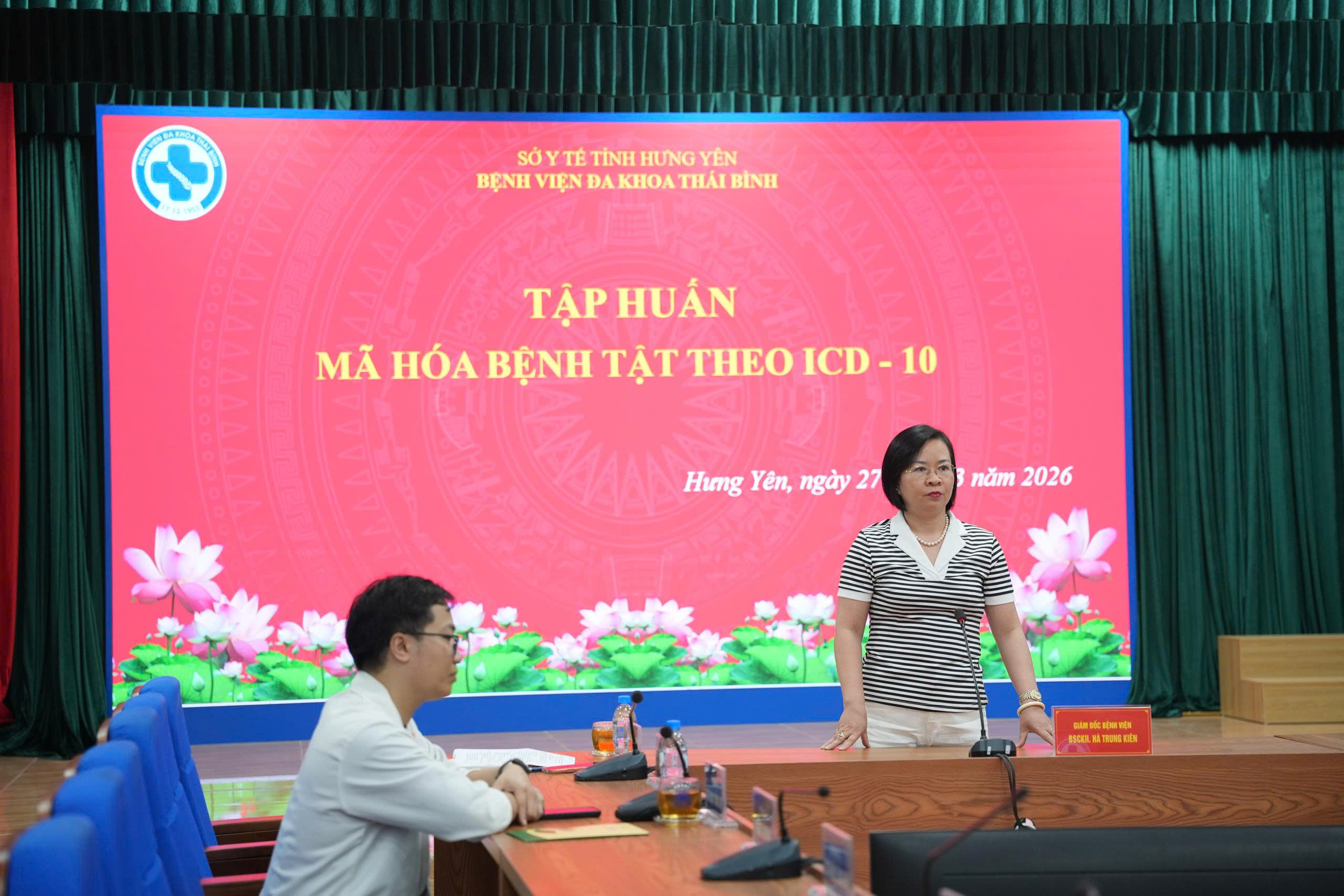 Nhằm chuẩn hóa công tác thống kê y tế và đảm bảo tính chính xác trong hồ sơ bệnh án, chiều ngày 27/03, Bệnh viện Đa khoa Thái Bình đã tổ chức lớp tập huấn “Mã hóa bệnh tật theo ICD-10” dành cho đội ngũ cán bộ, bác sĩ và điều dưỡng viên tại bệnh viện.